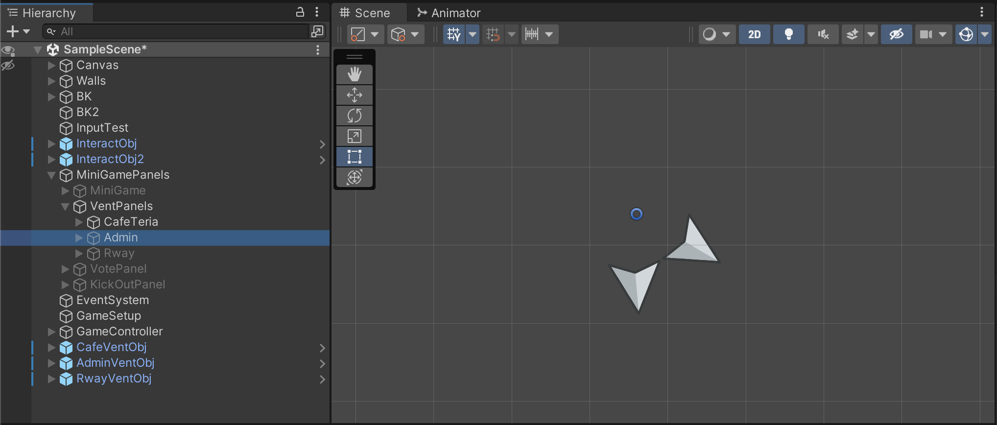 이렇게 하면, 벤트 오브젝트에 임포스터가 접촉했을 때와 벤트 오브젝트가 아닐 때에 임포스터가 아닌 플레이어가 접촉했을 때의 두 가지 경우만 highLight가 켜지고, 미니 게임(혹은 벤트 화살표) 패널이 열리게 된다.