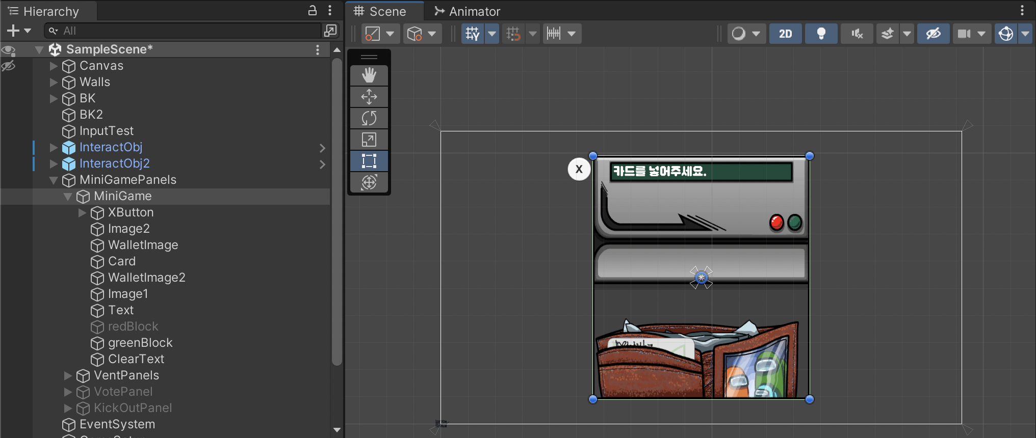 먼저, 근처에 다가가면 붉은 테두리가 활성화되고, 누르면 하수구에 들어가도록 Interact 기능은 다음과 같이 만들었다.