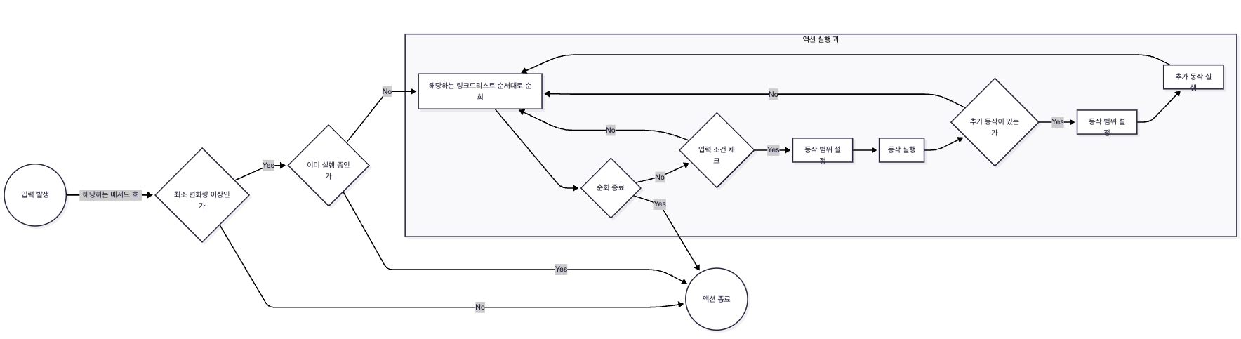 4. 입력 타입에 맞게 알맞은 액션 링크드리스트를 가져와 순서대로 실행한다.